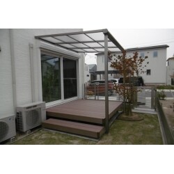 お子さまが安心してお庭で遊べるよう、フェンスと門扉で道路との仕切りを作り、また、お洗濯ものも干せるよう、屋根とデッキを取付させていただきました。お家が真っ白でモダンな雰囲気だったので、お庭も、色味を抑えすっきりとした雰囲気にさせていただいております。