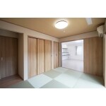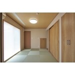 リビングに隣接する和室は、収納たっぷり。 階段下を利用した約2畳の収納スペースも設けました。 天井には埋め込み式の物干しがありますので、雨や花粉の時期のお洗濯も安心です。