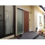 昔ながらの縦格子デザインを受け継ぎながらも、スタイリッシュな玄関引き戸をお選びいただきました。引き込み側はパンチングになっているので、光がたっぷりと入り明るいです。 鍵も以前と比べて複雑になっているので、防犯面でも安心ですね。 外壁、屋根の塗装もですが、家の顔である玄関が新しくなると雰囲気が一新されます。