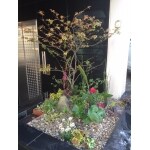 元々の電球が暗かったので、LEDのライトに変更していただき、豪華に見せるように植栽を施しました。