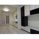 間仕切り壁を取り除いてリビングとダイニングキッチンを1つにし、LDKにしました。 リビングスペースに大容量の壁面収納を設置。リビングで使う小物や書類はすべて扉内や引き出しの中に納めることができました。物があふれることがないので、お部屋の中はいつもスッキリした状態です。