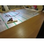 床暖房マットの施工中 北側でとにかく寒い部屋でした。