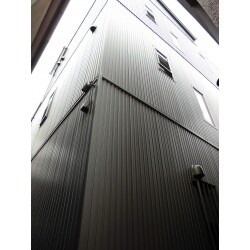 外壁の一面だけが窯業系サイディングでした。ほか三面と外観を揃えたいとのご要望に耐候性に優れたフッ素塗装高耐食GLめっき鋼板をお勧めいたしました。