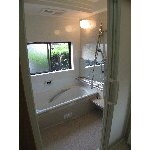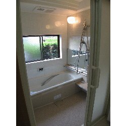 お風呂、トイレを広くしたいというご要望でした。ちょうど庭側にスペースがあったため、45センチほど増築して、お風呂は1坪、トイレは1畳の広さにできました。 電気温水器を使ってみえましたので、オール電化もお勧めしましたが、使い勝手と増築を優先しました。