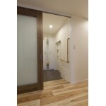 ブラウン調の建具が引き立つ、段差のないバリアフリー廊下に。
