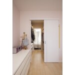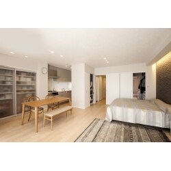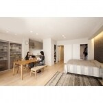 (旧積水化学工業株式会社での事例です。)従来の3LDKを思い切って見直し、広々とした1LDKを中心としたすっきり・シンプルな間取り。インテリアにこだわり、さらに玄関土間にはご主人の趣味のコレクションを陳列するショーケースも造作。ご夫婦がそれぞれの時間と暮らしを楽しむためのこだわりの住まいを計画し、ご提案いたしました。リビングと個室をつなぐウォークスルータイプのクローゼットは、プライベート空間を確保しつつ、生活するうえでその魅力的な機能を備えています。