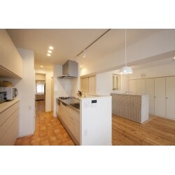 (旧積水化学工業株式会社での事例です。)築30年を超えているマンションでの不安の解消として、まずは室内をスケルトンにして断熱・給排水管を刷新、さらには二重床にすることで住まいの性能を向上。また、風が室内に豊かに流れるよう回遊型の間取りを採用。内装・インテリアは、アンティークな緑色の建具や自然のぬくもりを感じさせる漆喰の塗り壁などで「自分らしさ」を演出。住まい作りには、自分達も手を掛けたいという奥様のご希望があちこちに活かされて提案をいたしました。