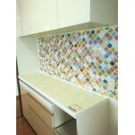 お客様のご要望に沿い、モザイクタイルを使用。吊戸棚撤去で開放感のあるキッチンをご提案しました。