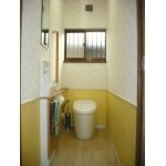 タンクレストイレにし節水も抜群になりました。 腰壁クロスにもアクセントを付け明るいトイレになりました。
