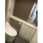 ホテルのようなスタイリッシュな仕上がりをご希望されていましたのでアクセントクロスを入れることをお勧めしました。 また、トイレ内にお子様用のポスターなどを掛けたいとのご要望でしたので、便座の正面にピクチャーレールを配置し、壁を傷つける事無く絵やポスターを飾っていただけるようご提案しました。