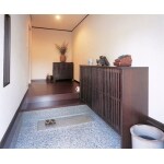 玄関収納はこだわりの家具と協調する和モダン調を造作。