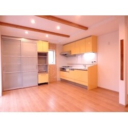 ・既存の屋根や柱を残しつつサッシ等を撤去し、2階に 大きな明るいLDKを。 ・部屋に映える黄色のキッチンは収納も多く、汚れや 衝撃にも強い。 ・基礎の新設と壁補強を行い、構造評点 0.61→ 1.01まで耐震補強。 ・床 天井裏の断熱材敷込、外壁は外断熱工法、アルミ サッシは防火樹脂窓を採用。