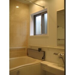 システムバスはお客様が事前にショールームでプランを作成されておりましたので、ほぼそのままの内容となりました。 3方向にフラットバーを設置、入口は引き戸、当然脱衣場床とはバリアフリー。 以前は大きな窓がありましたが、大きさを半分程度にし複層ガラスを入れ断熱性を高めました。