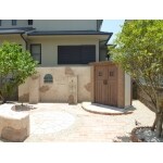 リビングからアートワークの壁やディーズガーデンの物置が見えるよう設置させて頂きました。また、既存のサークルは再利用させて頂きお庭のアクセントに。