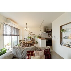 独立したキッチンを開放的でおしゃれなスペースにしたい。無垢の板材を使って対面カウンターを設置希望。 ベランダを見渡せるゆったりした空間にしたい。