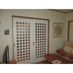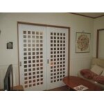 LIXIL片引戸2枚建てです。すべて壁に引き込まれるので全部開口すると2間がワンルームのように。色はクリエホワイト。明りを取り入れられるデザインなので締め切っても部屋が明るくなりました。
