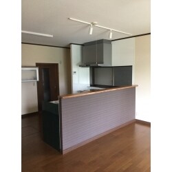 当初は、離れにお住まいのキッチン取替え工事予定でしたが、母屋のキッチンリビングリフォームに変わりました。 背面型で、独立感があったキッチンをL型の対面型にする事によって、家族で会話を楽しみながら調理できる広々としたキッチンの空間造りをさせていただきました。