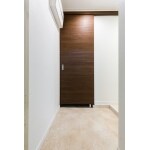 箱型の玄関収納を設置するケースが多い中、搬入経路のご相談もありましたので、あえて、シューズクローゼットという空間にして、部屋にも使うような引き戸をサイズオーダーし、床から天井付近まで大開口となるよう設計いたしました。