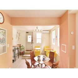 洋室2部屋の間仕切りを取り払い、厨房設備と客席のあるカフェにしたい。