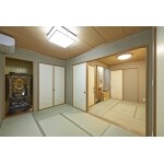 二間続きの和室はクロスを張り替えて畳も一新しました。 仏間にはゴールドをあしらったクロスを用いて全体を引き締めるアクセントカラーとして活用しました。