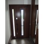 西日からの熱に相当お困りの様子でした。現状のドアは、欄間付きの片袖タイプでした。ドア本体を断熱仕様にし、夏場もドアを閉めたまま換気のできるタイプをお勧めしました。ドアのガラス部分に、室内側から開けられる窓があり外気を室内に取り込む事ができます。家の中へ大きな物を入れる事も考え、片袖のドアを親子ドアへのデザイン変更をご提案しました。