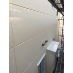 外壁にはパワーボードが採用されています。ALCのようなものですので、塗装時に注意が必要となる建材です。パワーボードは内部結露により内側で発生した湿気を吸います。通常湿気を含んでも徐々に外に逃げていくのですが、ここに被膜性の高いものを塗装すると、湿気が逃げづらくなります。 しかし2度目にさらに被膜性の高い塗料を塗ってしまうと完全に通気を塞いでしまいますので、膨れるリスクは高まります。またパワーボードは蓄熱性が高い為、夏場に壁が70℃近くになることもあり、そうなると外壁に含まれた水分が急激に膨張し、約350倍ほどになります。すると膨れが発生します。 その為、今回は透湿性を確保した仕様での塗装をお勧め致します。