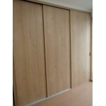 部屋の収納が少ないので、サッシのギリギリまで壁いっぱいに収納を設置しました。中のものがとりやすい様に3連引き戸で区切っています。
