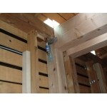 キッチンと浴室の間に耐震金物を設置しています。材木を増やすだけでなく、耐震金物を設置することで建物の安全性が高められます。実際は各所の柱に、耐震金物を設置しています。