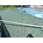 スレート屋根自体には特に大きな浮きや反り、割れもなく問題はありませんでした。しかし外壁がタイル張りほとんどメンテナンスが必要ないという事で屋根もメンテナンスのあまりいらない物にした方が今後の足場の費用を考えると良いのでカバー工法を提案させて頂きました。雨樋の交換と付帯部は塗装で提案。