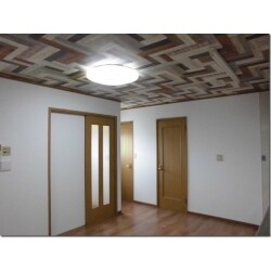 LDKと同じく、壁は無地のスタンダードなものを。 天上にはオーナー様のご希望でデザインクロスを採用。
