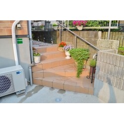 階段の形状は変える必要は無いとの事でしたので、撤去費用を抑える意味でもタイルの上貼りで施工しております。
