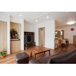 高齢のお母様とわんちゃんの為に段差を一切なくし、寒がりのお母様の為に床暖房を入れました。 まだそんなに古くない家でしたが、日当たり・風通しの悪い居間だったので、仕切りをなくし大きな窓で明るく快適な空間になりました。 光と風を取り入れることによって、省エネにも多大な効果が期待出来ます。 対面キッチンにした事で、背面にたっぷりの収納を設けてすっきりラクに片付けが出来るようになりました。