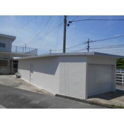 左官工事にてクラック補修を実施した。 屋根については防水(FRP)加工を実施した。 壁・シャッター・サッシ廻りなどは塗装(シリコン)にて実施した。