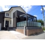 半透明のポリカフェンスを付け、ガーデンルームを取り付けました。車庫を少し広げ、玄関アプローチも作り変えています。