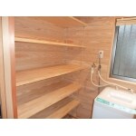 浴室・洗面所の収納がなく不便とのことだったため、可動式の棚にして収納する物にあわせて沢山収納できるようにしました。