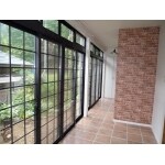奥様のお好みに合わせて、格子デザインのサッシや、タイル調クロスの提案をしました。