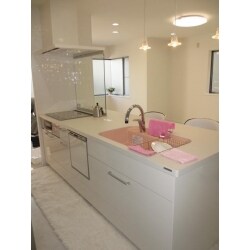 白とピンクが大好きなお客様で、お部屋を広く見せたいという要望でしたので LIXILシエラのセンターキッチン、ホワイトにまとめさせて頂きました! 施工させていただきました。