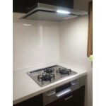 キッチンは、操作のしやすいもの、お手入れのしやすいものがご希望でしたので、 レンジフードはCLSシロッコファン、コンロと連動させました。 フードとコンロを掃除しやすい物に、また3方にキッチンパネルを張り、油汚れに強い、掃除のしやすい キッチンとなりました。