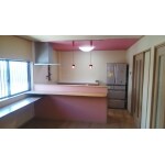 - ピンクのアクセント システムキッチン交換 アレスタ 八尾市