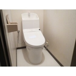 施工後 手洗いを備えたウォシュレット一体形成のタンクです。