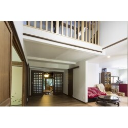 母屋と隣接して建てたLDKの離れとを繋げ、三世帯が利用する別荘として、古民家をイメージしたリフォームをいたしました。