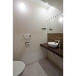 狭いトイレに広がりを感じるよう、一部分に鏡を設置。