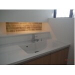 パナソニックのラシス!W1000を設置しました。カウンターとミラーの間約35センチ程の間にはエコカラットプラス貼って水はねを防止!