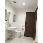 トイレはアラウーノ、洗面台は造作で取付しました。全体的に白を基調とし、清潔感のある洗面トイレ室になりました