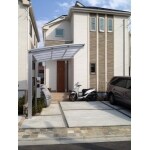 駐輪スペースを効率よく配置し、雨除けにも効果を発揮させると共に、玄関廻りもスタイリッシュに見せるため、配色はシンプルなものをご提案しました。