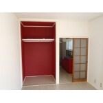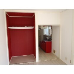 6室同時施工ということで、お客様のご予算をもとに内装リフォームを行いました。 クロス貼替や床を白系統の明るい色に変更し、押入れからクローゼットに変更するご提案をしました。また、他アパートとの差別化とのことでしたので、クローゼットやキッチンを赤いアクセント仕上げをご検討・ご採用いただきました。