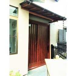 【施工後】新しい玄関には、LIXILの引き戸を使用。大型レバーハンドルを付け、開閉ラクラク。 防犯性に優れているので安心です。 デザインも縦通しの木目調で和風の戸建てに合っています。