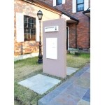 セールスなど応対したくない人の対応策で敷地に入ってすぐのところに、インターホン付きポストと宅配ボックスをセットした門塀を提案。 これで、玄関まで入って来ず、ひとまずカメラ付きインターホンで応対出来るようになりました。塀はないのですが、見えないガードをこの門塀が担っています。