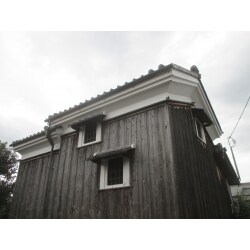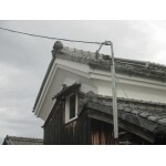 敷地内の蔵の白壁部分が経年劣化のため落ちているため、樋に欠損した材料が詰まって雨水が流れない。 樋に穴が開いている。