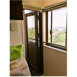マンション新築時に取り付いていました勝手口網戸の破損のため、新規網戸取替え工事となります。 元々取りついておりました網戸はワイヤーに負荷がかかり、ワイヤーが切れており、使用ができない状況でした。 今回、しまえるんですαをご提案し、設置させて頂きました。しまえるんですαは、框内部に上下のキャタピラが枠に入り込む構造です。 動きはスムーズで、網自体も型くずれしにくく、風による変形にも強くなっております。更に使用しないときは、網戸本体がはずせ、物置等に収納できます。 F様も大変喜ばれており、お奨めの商品となります。